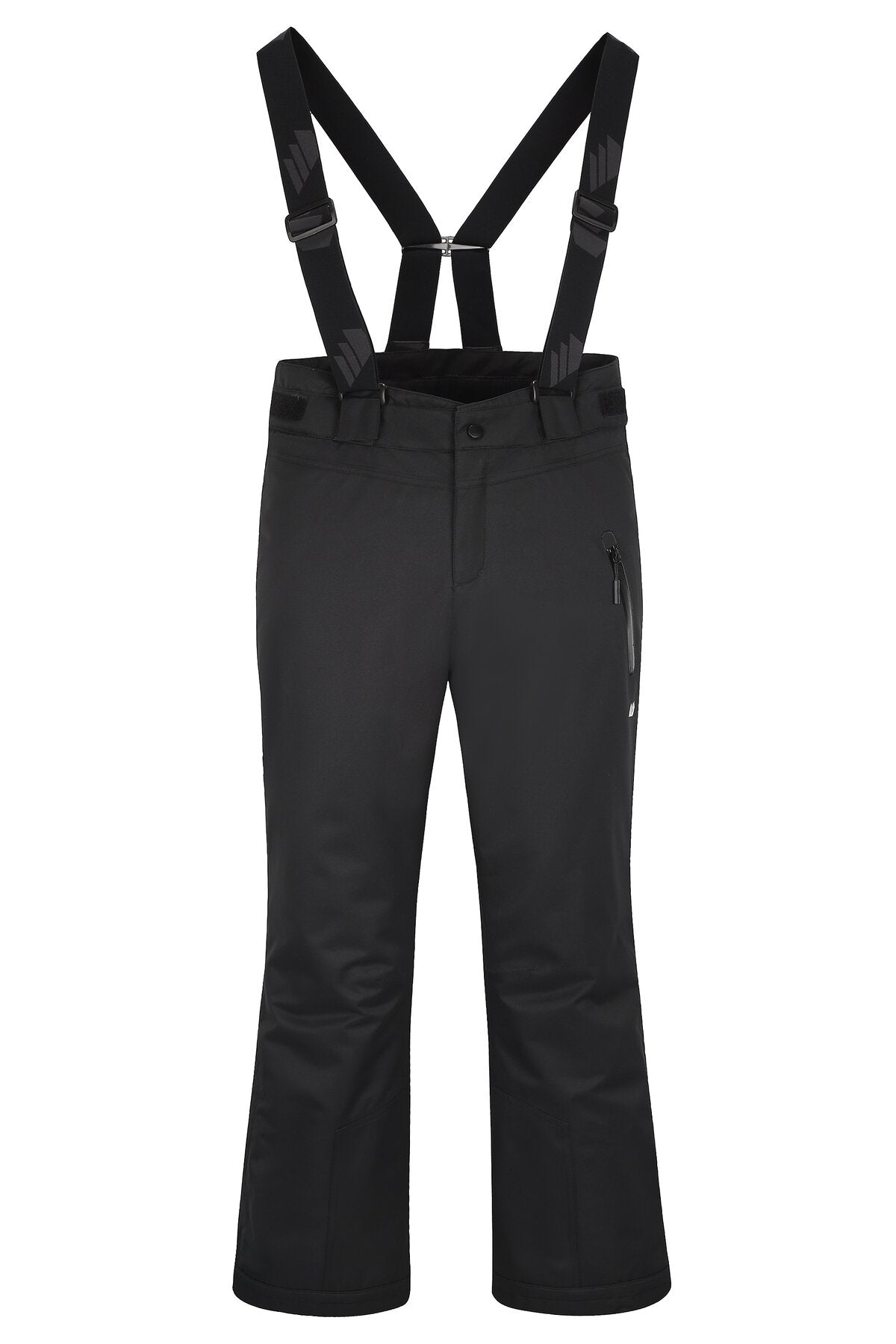 Teknisk vattert skibukse i 2-lags materiale Yttermateriale: 100% Polyester Isolerende materiale: 100% Polyester, 80 g/m2 Vanntett, vindtett og pustende Tapede sømmer Glatt fòr Formsydd kneparti Avtakbare, elastiske og justerbare seler Snølås med borrelås i bena Gylf med glidelås Glidelåsåpning nede på bena Linning med beltehemper og elastisk, justerbart belte Lårlomme med glidelås Borrelås for justering av benvidde Synlig glidelås er vannavvisende Reflekselementer Vanntett WP 12000 mm Pusteegenskaper WVP 8000 g/m2/24h Kompatibel med alle EU-standarder for sikkerhet for barneklær
